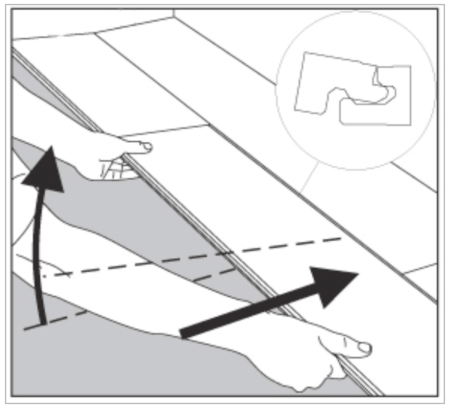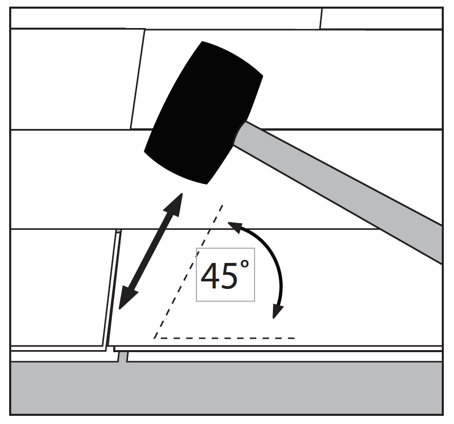 - Tap the joint with the rubber mallet using a downward angle striking motion towards the adjoining end joint (Figure 5) until the tongue and groove lock together on the side and ends.