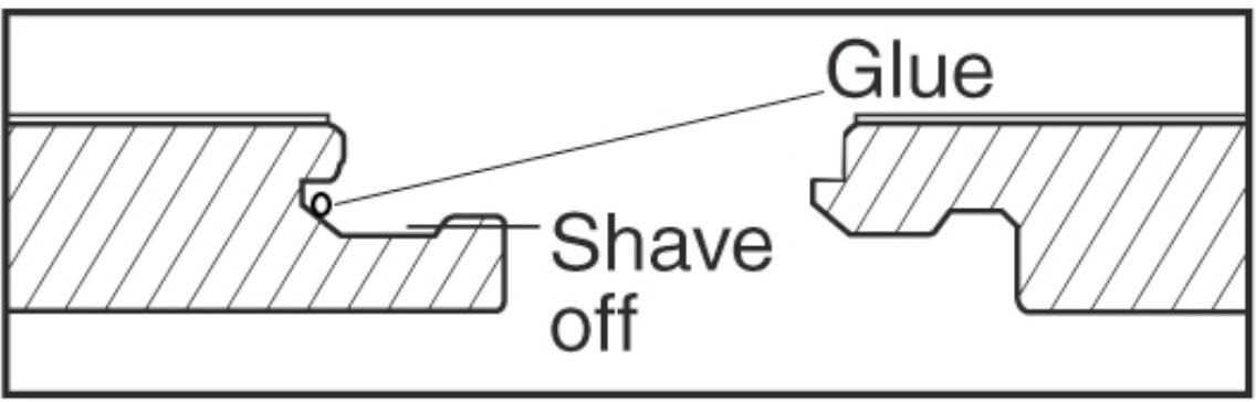 - After the groove ledge has been trimmed, place the plank in place and tighten with a pull bar. The installer must be sure that the required expansion gap has been maintained and the flooring is not pinched.